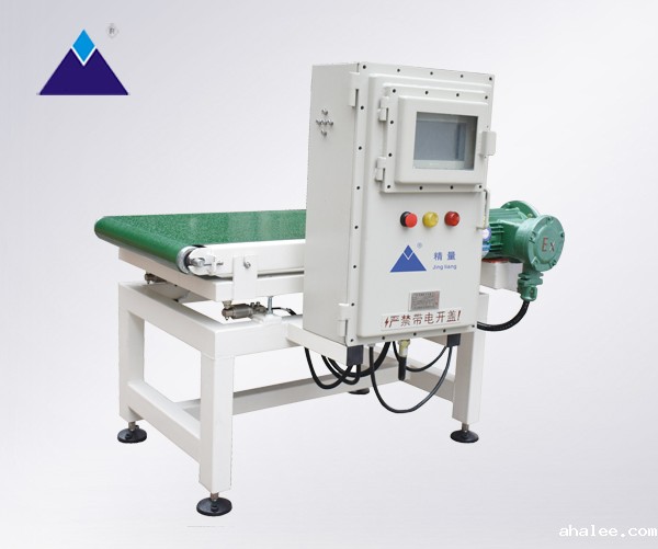 防爆秤:被分成电子防爆秤、皮带防爆秤、工业专用防爆秤等。根据其类型的不同又被分为:复合本质安全型防爆秤、本质安全型防爆秤及隔爆型防爆称与粉尘防爆秤。可根据使用场合的危险性级别来选择不同类型的秤重设备。我司生产的此款JLCW-50KG-FBC是一款针对客户现场专门定制的非标专用型防爆秤,采用了EX防爆型电机、防爆传感器及防爆电控仪表箱等组合而成。